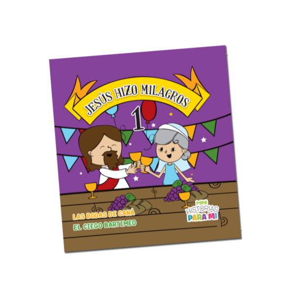 Jesús hizo muchos milagros, para que todos creyeran que Él era el Hijo de Dios que había venido a salvarlos. En esta colección los niños descubrirán los grandes milagros de Jesús, en este caso, cuando convirtió el agua en vino y cuando dio la vista al ciego Bartimeo. ¡Mini Libro a Color!