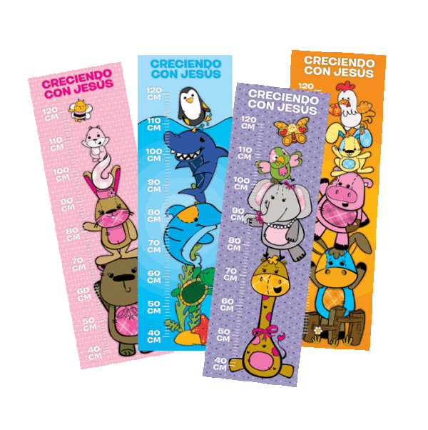 Medidor vinílico autoadhesivo para pegar en la pared u otra superficie. De la Serie Animales que Dios Creó, en 4 bonitos motivos: El Mar, La granja, El Bosque y La Selva.