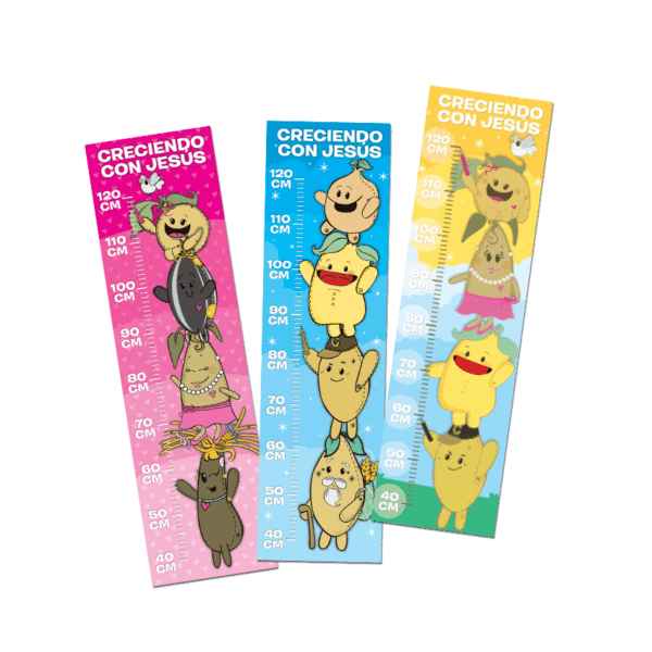 Estos encantadores diseños darán vida al cuarto de los niños o al aula de la escuela. ¡Nada les gusta más que medir su estatura y ver cuánto están creciendo con Jesús! Con vinilo y tintas de la más alta calidad, estos medidores durarán hasta que los niños lleguen a los 120 cm. Deberás colocarlos a partir de los 40 cm del piso.