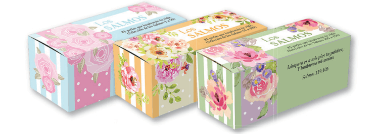 En cada una de estas hermosas cajitas encontrarán 81 Salmos preciosos de la Biblia.