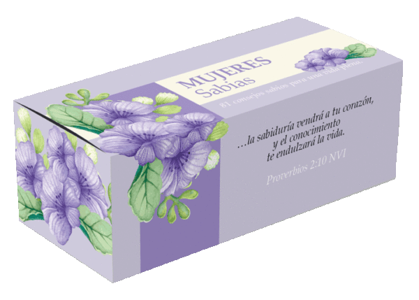 Pensadas para la mujer, esta cajitas de 81 perlas bíblicas contienen la imagen de una flor y un proverbio pensado especialmente para las mujeres. En el dorso tienen espacio para dedicar.