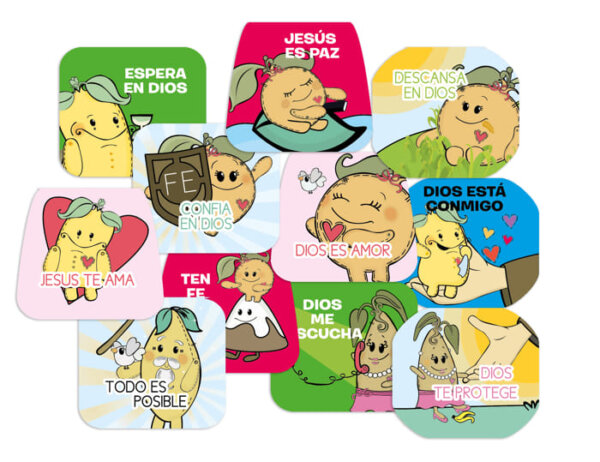 Todos los modelos vienen en un pack por 3 unidades, con una frase inspiradora o un versículo; en el dorso tiene espacio para dedicar.